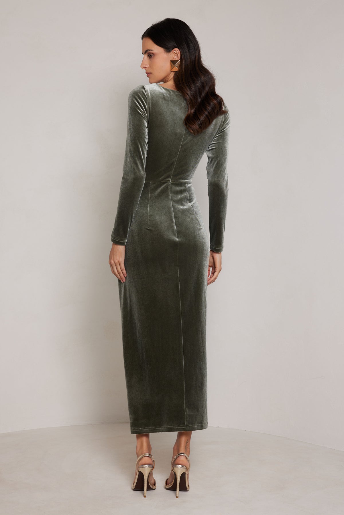 This stunning dress is crafted from luxurious velvet, features a sultry side slit and drapes beautifully on the body, creating a flattering silhouette that is both elegant and flattering. Perfect for any special occasions.